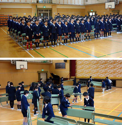 音をさせずに「起立・礼・着席」を行う練習、声を響かせて歌う練習。6年生をしっかり送り出すために、最高学年のバトンをきちんと受け取るために…。