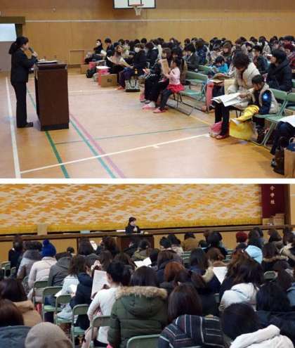 この4月に常盤小学校に入学するお子さんの保護者を対象にした入学説明会が、講堂で行われました。