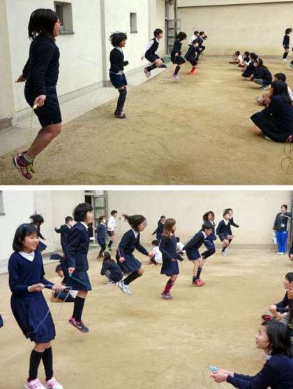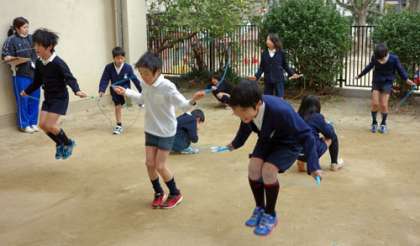 なわとび月間は2月14日で終わり、今はマラソン月間になっていますが、“なわとびギネス”の記録計測をしているクラスはまだあるようです。2時間目、5年2組が分校中庭で記録をとっていました。