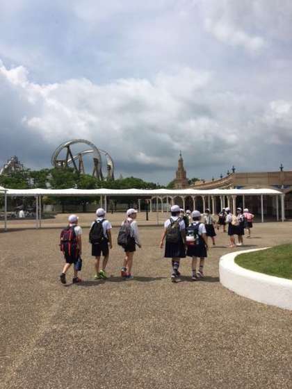 な、な、なんとみんなの願いが届いたのか1時間近くも早くスペイン村に到着しました!いっぱい遊ぶことができますね。さあ、これから各班に分かれて乗り物に乗ったりやお昼ご飯を食べに行きます。修学旅行、順調に進んでおります!