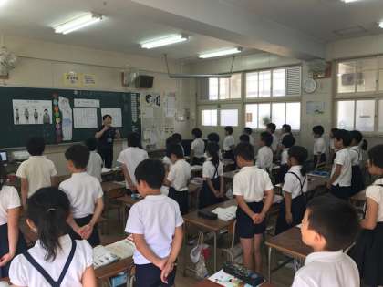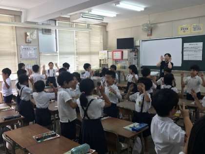 正しい姿勢でしっかり音の高さをたしかめながら、のびのびとした歌声が教室いっぱいに広がっていました。