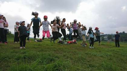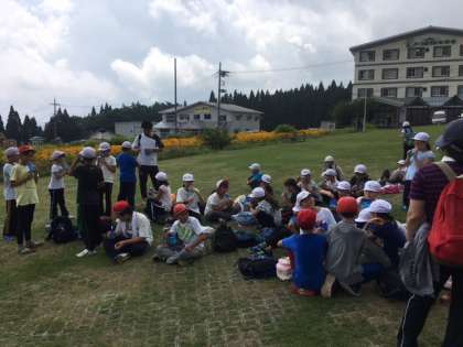 高原ハイキングから帰ってきました。スポーツドリンクで休憩中です。子どもたちはまだまだ元気です。