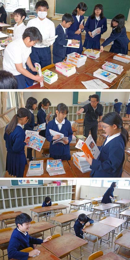 式場づくりはもちろんのこと、1年生教室の清掃と飾り付け、ろうか・トイレ・階段・玄関・講堂まわり・来賓控室の清掃、1年生用の教科書の仕分けと運搬もしてくれました。