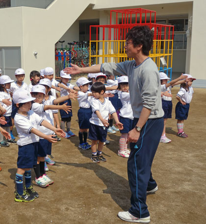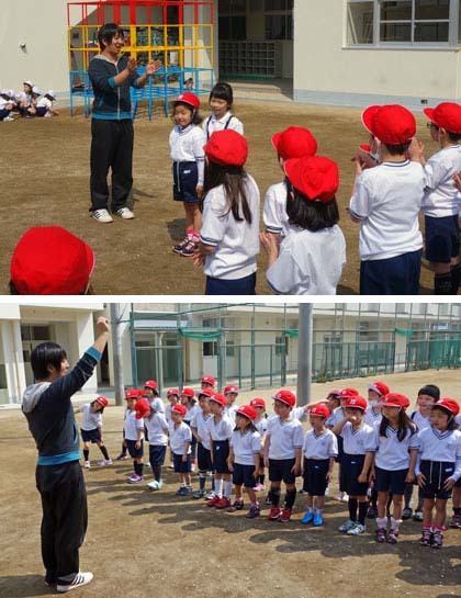 2時間目、西校舎前のミニ運動場で、1年3,4組の子どもたちが体育の学習をしていました。ならび方やハンドサインで立つ・座る等、集団行動の練習ですね。ジャングルジムでの遊び方も教えてもらったようですよ。