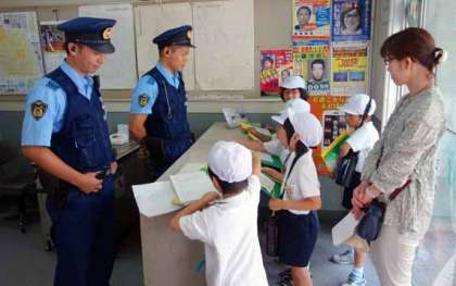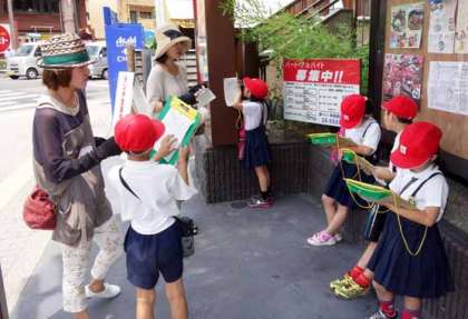 3時間目、2年生が町たんけんに出かけました。5〜6人の班で、目的地に向かってレッツ・ゴー!