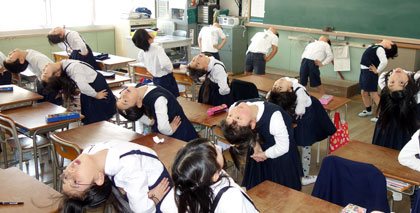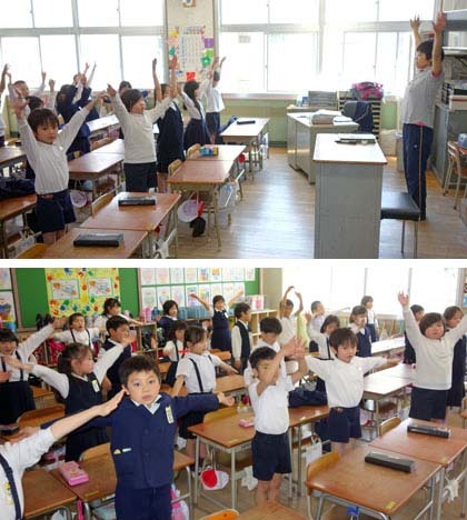 午後1時40分から1時55分までの15分間は、パワーアップタイムです。今は、教室でラジオ体操をしています。