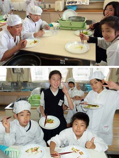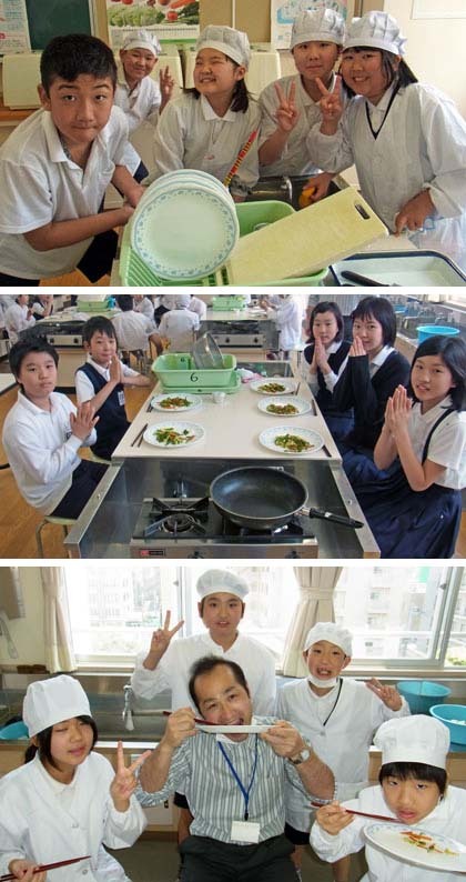 3,4時間目は、1組の実習タイム。「中の人」は取材に行けなかったのですが、家庭科担当のN先生が写真を撮ってくださっていました。N先生ナイスショット!