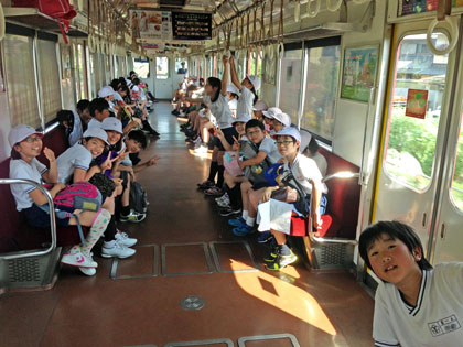 活動を終え、帰路につきます。帰りの電車は、なんと団体貸切! ゆったりです。
