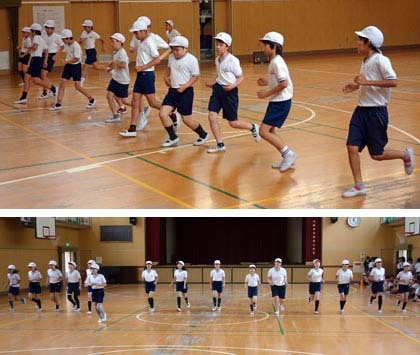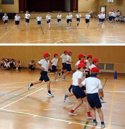 新体力テスト期間は終わりましたが、各クラス残った種目を体育の時間に測定しています。4時間目、講堂で6年生が「20mシャトルランテスト」をしていました。