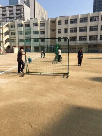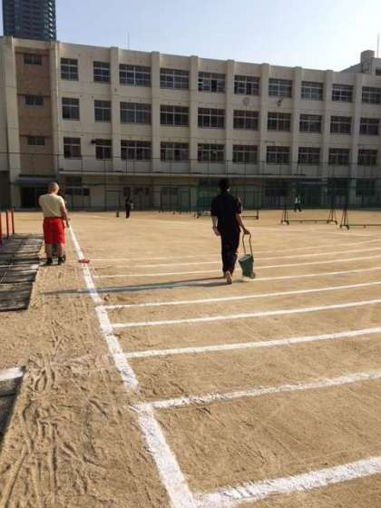 今日は天候不良で先週実施できなかった2.3年生の体力テストがあります。朝早くからみんなが頑張れるように先生らも準備を頑張りましたよー!
