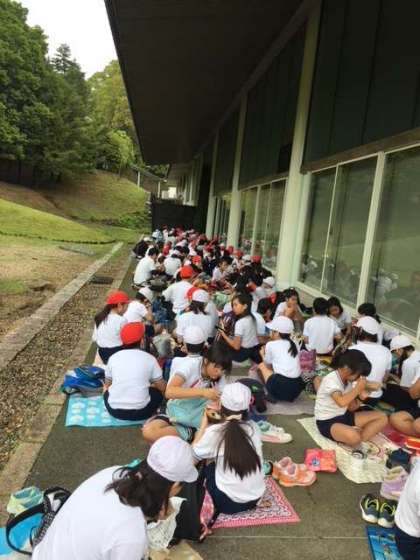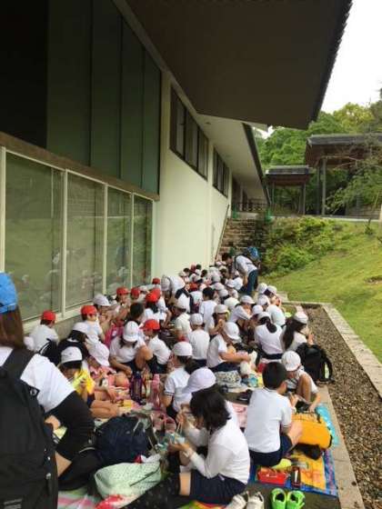 オリエンテーリング無事終了〜しかし雨が...(涙)屋根のある所でお昼ごはんです!この後予定を早めて、大仏殿に行きます