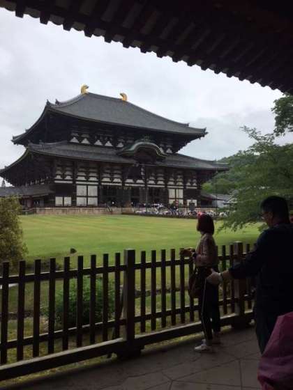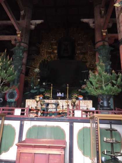 雨も小雨になり、お腹もいっぱいになったところで、大仏殿を見学しました。さすが、奈良の大仏。
