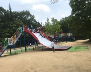 他の学校や幼稚園も遠足に来ていましたが、珍しく、この時間、遊具ゾーンには常盤の4年生だけ。貸切状態で思いっきり遊んでいます。