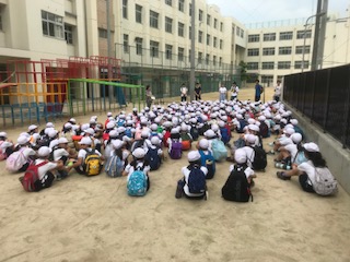 蒸し暑い日でしたが、みんな頑張って歩きました。学校に着いて、終わりの話を聞くときも、先生の方を向いてしっかり聞いていました。