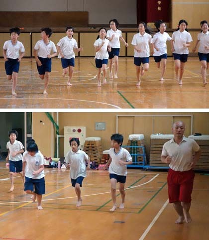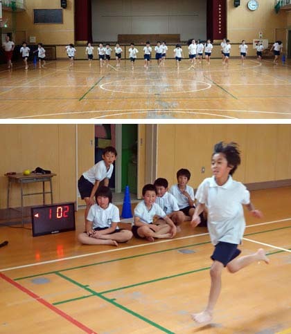 カウント音が鳴り響く講堂。汗だくになりながら、ただひたすらに20mの距離を往復する子どもたち。徐々にスピードアップ、体力そして精神力が削られていきます。