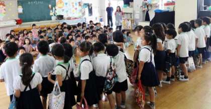今学期最後の幼小交流、1年4組が文の里幼稚園へ出かけました。