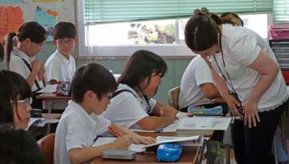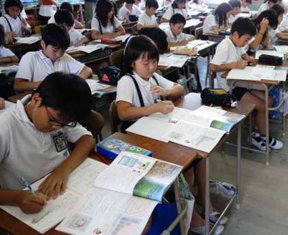 6時間目、5年2組は社会の授業。日本の米作りについて学習していました。
