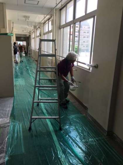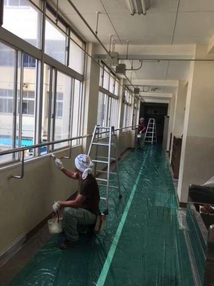 みなさん、夏休みはいかがお過ごしですか?本当に暑い日が続いているので、家でのんびりしている人も多いでしょう。学校では、子ども達がいない間に管理作業員さんが本校二階校舎内の壁をきれいに塗り替えてくれました。下塗りから本塗りまで大変暑い中汗だくになって作業してくださった管理作業員に感謝です。