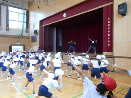 5年生の運動会練習の様子です、まだ始まったばかりですが、きちっと列が整っていたり、一斉に動きを合わせて踊ったりと練習に対する気持ちは万全です。5年生の団体演技は「エイサー」で2曲踊るそうです!この時の練習では「ダイナミック琉球」という曲の振り付けを練習しているそうです。今後が楽しみですね♪