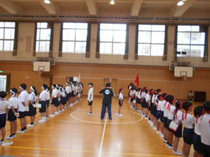 応援団も頑張っています!毎朝、応援団の児童は体育館に集まり、大きな声で練習しています。赤白それぞれの団長のもとで、団結力も高めています!本番まで残り2週間、期待しています!