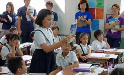 6時間目、3年3組で、教員対象の参観授業(教員の研修)が行われました。水曜日は全学年5時間授業の日ですが、3年3組だけ6時間も授業を行いました。