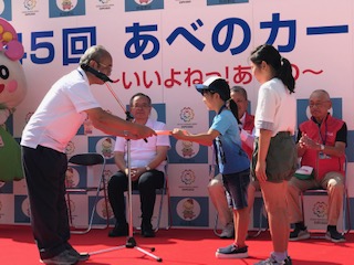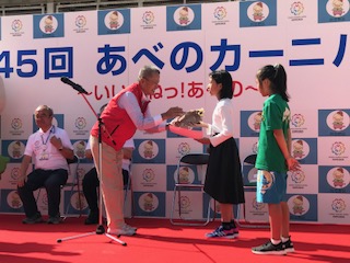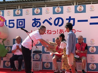 市長賞の野地さんは中尾副市長から、区長賞の中井さんは宝田区長から、あべの大賞の黒川さんは高岡座長から、それぞれ賞状と記念品を授与されました。