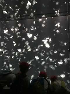 ふわふわ、ゆらゆら、水中を漂うクラゲを見る児童たちの目はきらきらしていました。