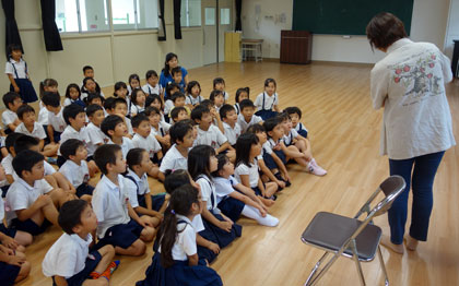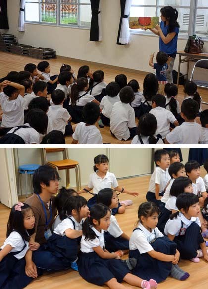 今日はPTAのボランティアさんによる本の読み聞かせの日。今日も大盛況でした。1年3組担任のY先生も、子どもたちといっしょに来てくれましたよ。