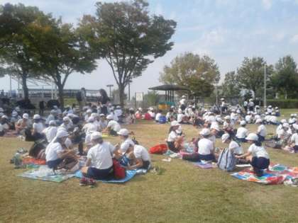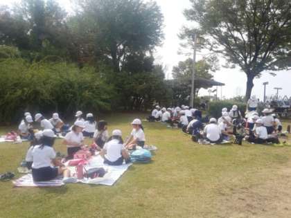 芝生広場から移動しました。今からお弁当を食べます。いただきます。