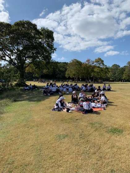 待ちに待ったお弁当タイムです!ひろーい公園でみんな仲良く食べています!