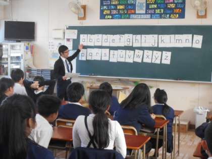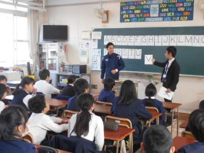 写真は2組の英語の出前授業の様子です。発音を重視した授業の進め方で、2人の先生が1人ひとりを丁寧に見てくださっていました。