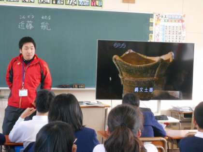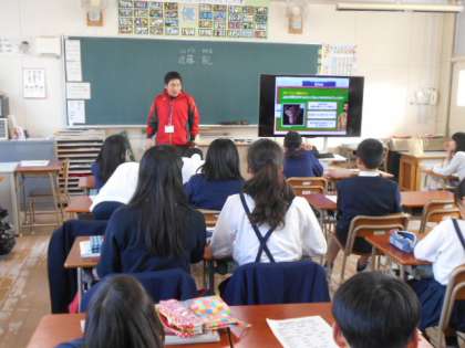 写真は3組の社会の出前授業です。動画や映像資料を活用しながら、時々クイズが出るのででみんな必死に答えていました。