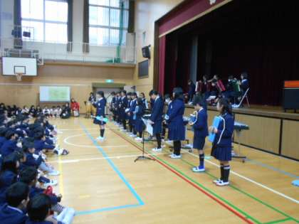 今日は6時間目にクラブ発表会がありました。3年生が最前列で並ぶなか、「器楽クラブ」と「一輪車・縄跳び・竹馬クラブ」が発表を行いました。器楽クラブの楽しい演奏と、一輪車・縄跳び・竹馬クラブの迫力のある演技に3年生のみんなはくぎ付けになっていました。次年度、クラブを選ぶのにとても参考になったのではないでしょうか。発表したクラブの子たち、素晴らしい発表をありがとうございました!