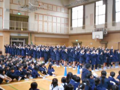 続いて、、4年生は高学年らしく少し渋く「人にやさしく」を歌ってくれました!5年生は、学年のカラーを前面に出してコントを取り入れて盛り上げてくれました!歌は森山直太朗の「さくら」でした!そして最後は6年生からのお礼の歌として、「3月9日」を心を込めてきれいに歌ってくれました。