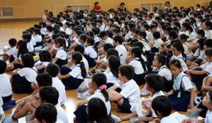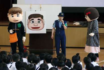 3時間目、1〜3年生対象の、防犯教室が行われました。場所は講堂です。