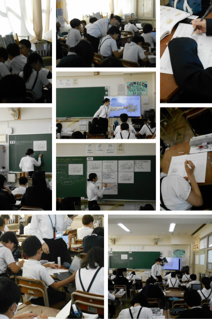 本日の6年生の算数では教育実習生が授業を行いました。子どもたちは、直方体や円柱などの体積を底面積×高さで求めることを学習しているので、その考えがほかの立体でも活用できるのか考えました。