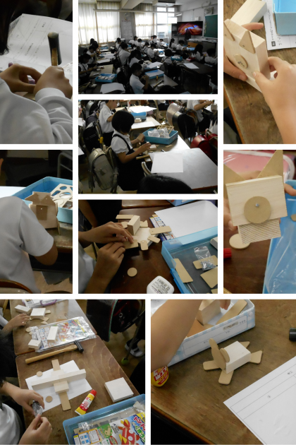 3年生の図工では、木材を使って自分の好きなものを作成しています。木と木を付ける際には、くぎを使用します。金づちを使いくぎを打っていきますが、普段あまり使わない金づち。手を間違って打たないように慎重に打ち付けていました。素敵な作品に仕上がってきています。