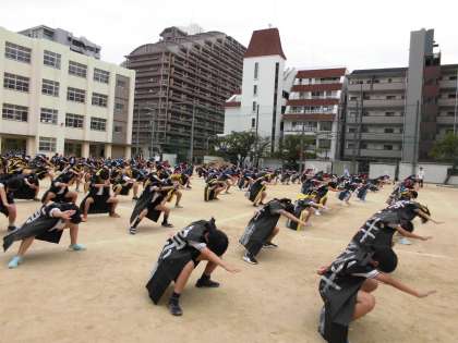 今日は法被を着て、初めてソーラン節を踊りました。最高の運動会にするために、精一杯練習してきたので、本番を楽しみにしておいてください。