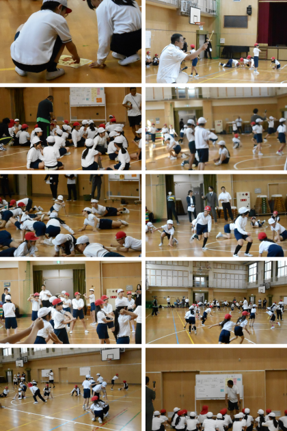 4年生の体育は表現運動を行いました。野球や陸上をイメージして自分が思った通りに体を動かします。気を付けることは動きは大きく。子どもたちは、楽しそうにイメージを膨らませ表現していました。今日の授業はほかの学校の先生たちも見学に来られていました。