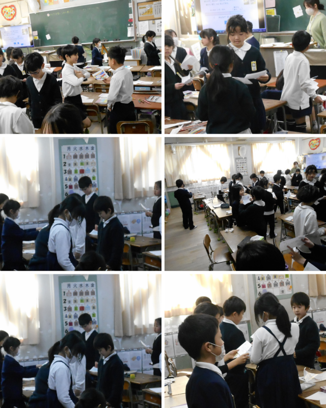 2年生の道徳では、お友達にありがとうカードを書きました。日常の中でふとした感謝の気持ちを伝えます。書き終わるとみんなで相手にカードを渡しに行きます。少し照れている児童もいましたが、ありがとうカードをもらってとてもうれしそうでした。