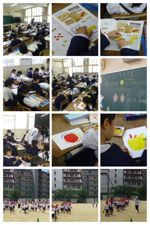 1年生の3時間目は算数、図工、体育の学習を行いました。