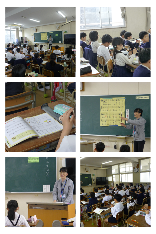 4年生の音楽の様子です。リコーダーの練習を丁寧にしていました。きれいな音を出す練習はとても大切ですね。歌の練習では「早口」という歌を歌っていました。言葉をはっきりと歌う、リズムよく歌う練習です。楽器や歌のスキルアップに取り組んでいました。