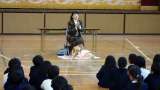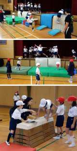 2時間目、講堂でとび箱の学習をしていました。2クラスでの体育ということで、舞台付...