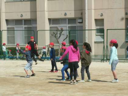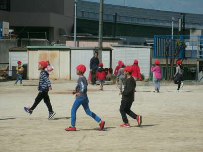 とてもいい天気になりました。暖かい日差しの中、たくさんの子ども達が運動場に出て遊んでいます。