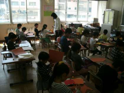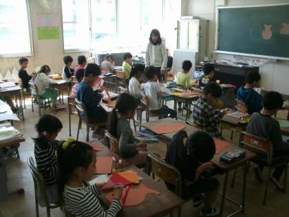 図画工作科の学習の様子です。「ふしぎなつぼ」という作品を作っていました。ふしぎなつぼを切り抜いているところです。どんな作品に仕上がるのか楽しみですね。