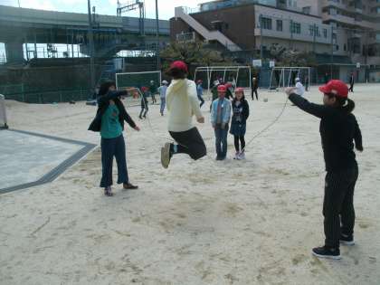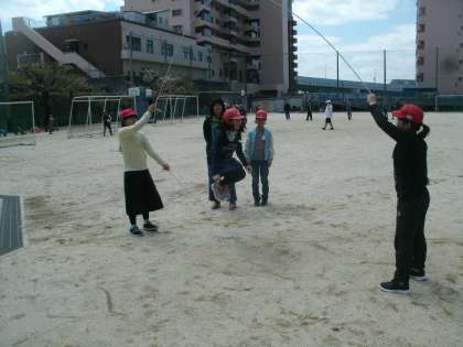 6年生の女の子達が最近ダブルダッチに取り組んでいます。ダブルダッチというのは2本のなわを使う縄跳びです。テレビなどでプロのパフォーマーが紹介されているのを観た方もおられるのではないでしょうか。跳ぶのは難しいのですが、6年生の女の子達は少しずつ上達しているようです。案外、ターナー(回し手)が難しいようです。