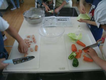 調理実習(1) 6年生 公開日 2019/04/22 更新日 2019/04/22 お知らせ 6年生が調理実習「野菜炒め」に取り組んでいました。にんじんやキャベツの野菜に合わせてウィンナーも一緒に炒めるそうです。調理実習は5年生の時から何度か取り組んできたので、ずいぶん手際もよくなってきました。一度、ご家庭でも野菜炒めをおかずにされるときは、お子さんに任せてみるのもいいかもしれませんね。 いいね(0)