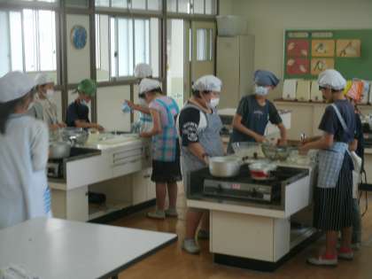 今日は5年2組が初めての調理実習に取り組んでいました。1組と同じように手際よくできたかな。