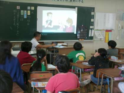 水曜日の朝は全学年、英語活動に取り組んでいます。