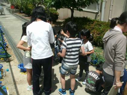 ミニトマトの花が咲き始めました。観察のためにタブレットを使って学習しています。